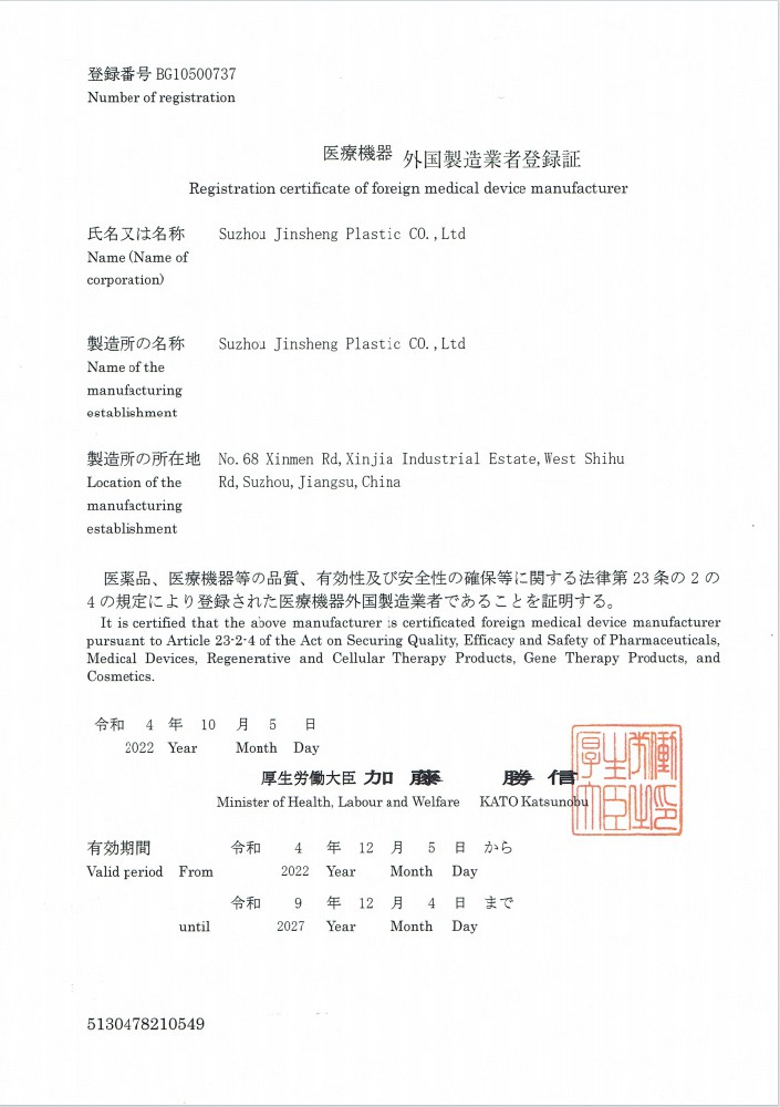 醫(yī)療器械國外認定證書